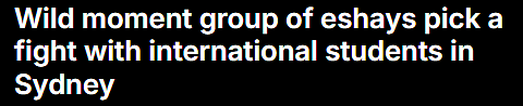 一段中国留学生在悉尼街头与小混混(eshay)对峙的视频,在网上迅速传开。