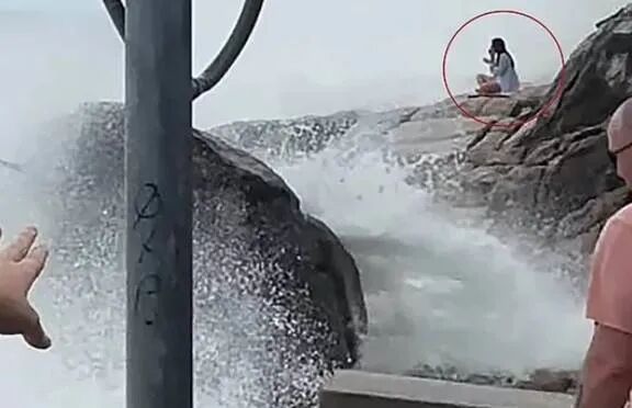 收藏度假天堂惨案! 美女演员被巨浪卷走 1秒内完全消失! 游客惊恐