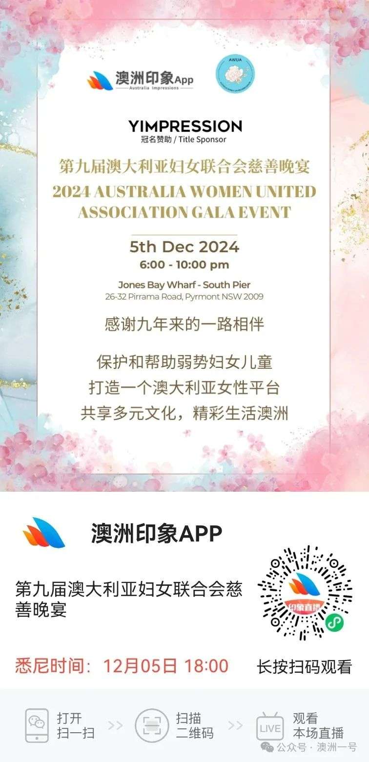 2024年12月5日,第九届澳大利亚妇女联合会(Australian Women United Association,简称AWUA)慈善晚宴在新南威尔士州Doltone House Jones Bay Wharf圆满举办。活动吸引了约200位会员及嘉宾齐聚一堂,共襄盛举,为弱势群体带来关怀与支持。