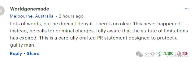 “他说了很多话,但他并没有否认。没有明确说‘这没发生过’,反而他在呼吁提出刑事指控,心知肚明时效已经过了。