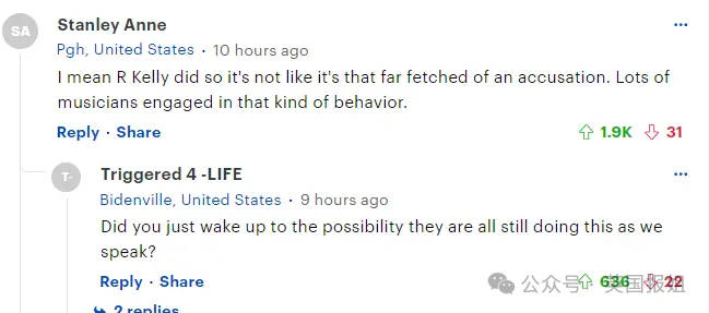 “我的意思是,R Kelly 做过这事,所以说这种指控也不是完全不可能。很多音乐人都做过这种事。”