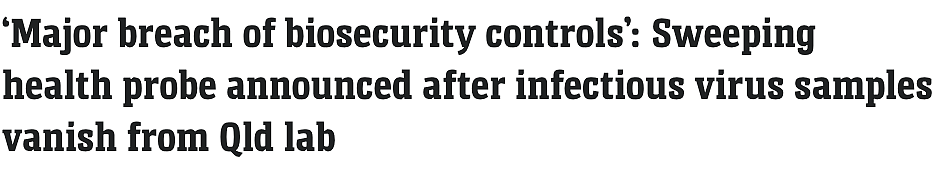 澳洲新闻集团12月9日报道,昆州一所州立实验室曝出“重大安全管理失误”,实验室内的多种致命病毒样本丢失,其中甚至包括生物危害性最强的4级病毒。