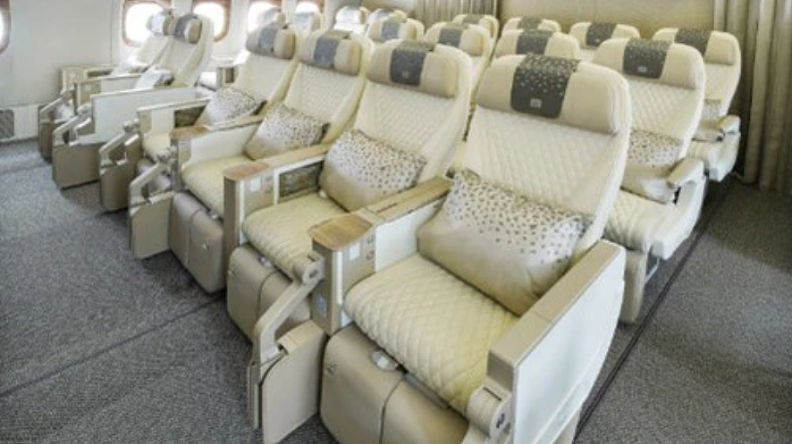 除了24个豪华经济舱座位,该波音777客机还配备8个头等舱套房、40个商务舱座位和256个经济舱座位。