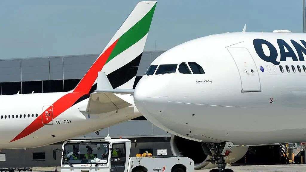 澳航则表示,在阿联酋航空周一下午发布声明后,他们正在联系客户,讨论替代旅行选项或提供退款。