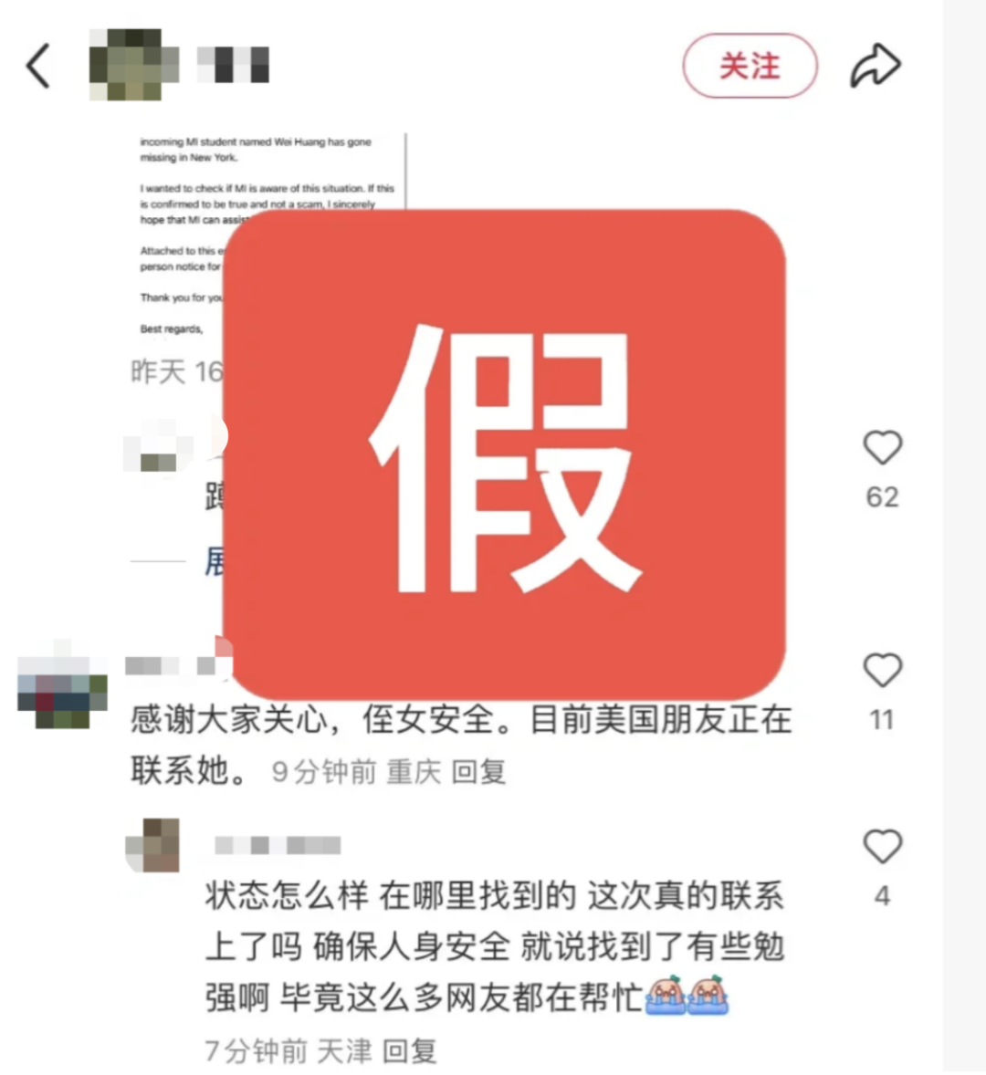 最近,小红书博主@地球观光K 发布寻人启事称,其好友黄蔚(Wei Huang) 已在纽约失联第十天!