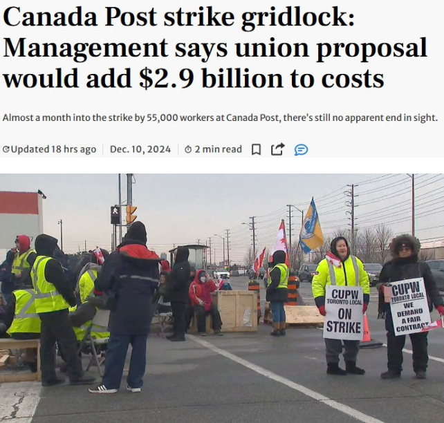 加拿大邮政表示:“虽然我们认识到加拿大邮政工人联合会已就工资要求采取了行动,但考虑到公司巨额亏损和不断恶化的财务状况,工会的提议仍然远远超出了公司的承受能力。”