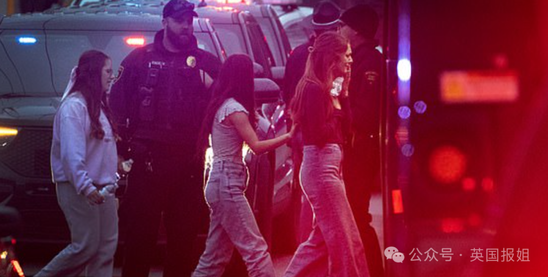 当地警方迅速反应,封锁了学校周边,学生们坐上大巴转移到校外的“团聚点”。