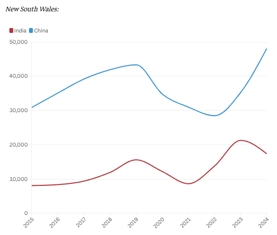 相比之下,印度学生更多集中在墨尔本(维州),而墨尔本的住房压力相对较小。