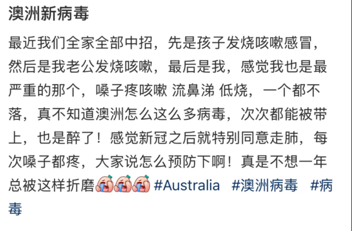 虽然澳洲目前是夏天,天气已经变热,但是还是有不少华人中招。