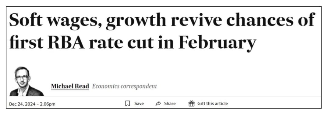 最近,市场对澳洲储备银行(RBA)将在 2025年第一季度降息 的预期持续发酵。据澳媒报道,如果 通胀率和失业率低于或符合预期,澳联储可能会 在明年2月开启降息周期。