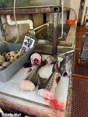 报告还指出,这些市场的卫生条件极为恶劣。市场内到处都是血迹斑斑的工具和肮脏的地面,尸体的恶臭四溢,甚至有活鱼被从运输车上卸下后掉落在地上。许多活鱼和海鲜被暂时放置在脏乱的水槽里,甚至部分鱼类在离开水后死去。