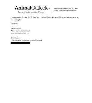 该组织称,根据加州的动物保护法,屠杀活体动物的方式应当遵循严格的规范,禁止对动物进行不必要的痛苦。动物展望明确表示,切割和肢解活体动物的行为构成“酷刑、折磨、残忍致残”,并违反了加州《一般虐待动物法》。加州法律并没有对饲养的动物作出额外规定,因此所有在市场上发生的虐待行为都应该立即停止。
