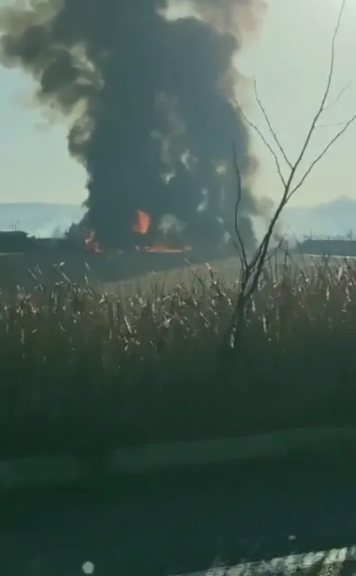 滚滚浓烟升起,消防车赶到!