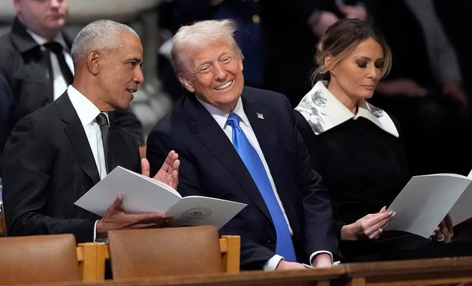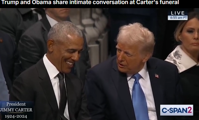 在刚刚过去的卡特的葬礼上,媒体拍到了奥巴马与川普聊天甚欢,这也引发了网上的热议。