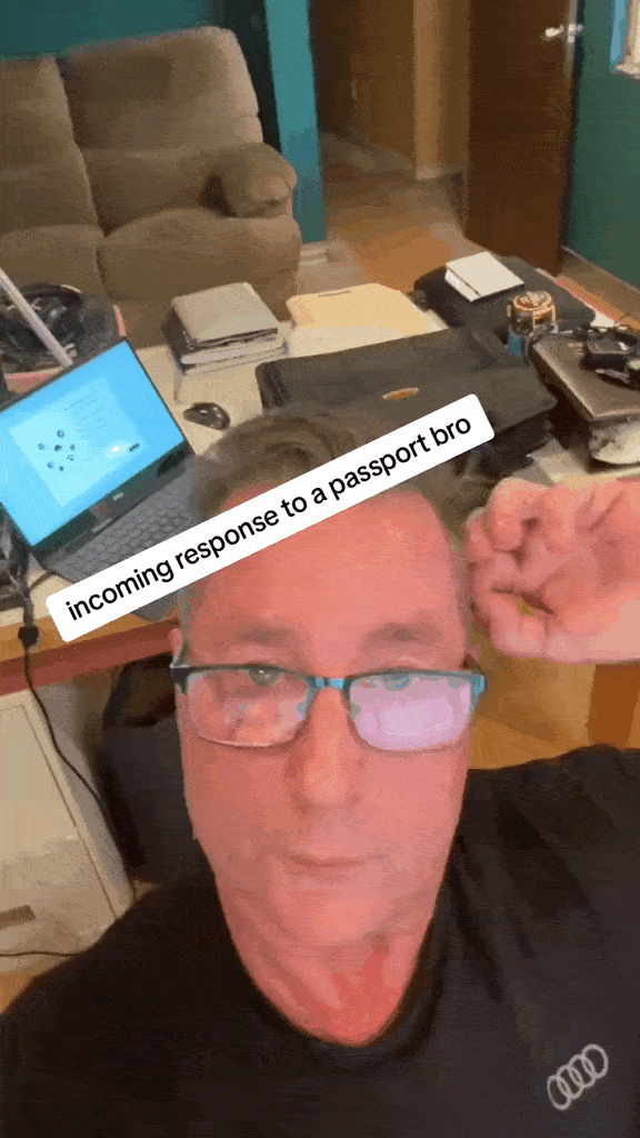 视频中,大叔自嘲自己成了“护照哥”,一整个被人利用。
