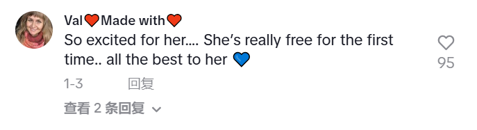 真为她感到高兴.... 她第一次真正获得了自由......祝她一切顺利