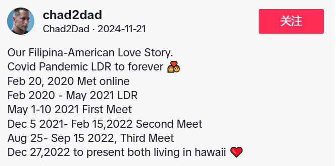 在线下见过3次面后,两人在2022年一同搬到了夏威夷,并选择了结婚。
