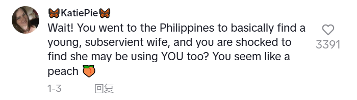 等等!你去菲律宾基本上是为了找一个年轻、顺从的妻子,而你震惊地发现她可能也在利用你?你看起来像个傻瓜