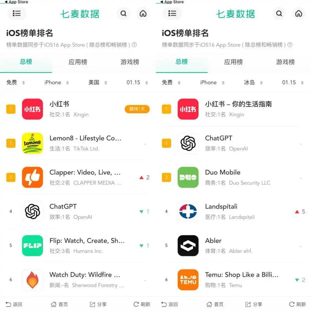 有人感叹:“在世界尽头的冰岛,小红书也冲到了第一。”
