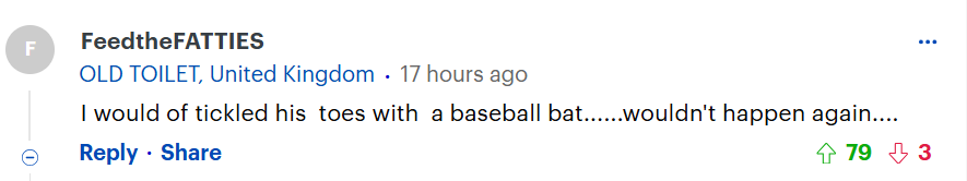 我会用棒球棒挠他的脚趾......,不会再让这种事发生了....。
