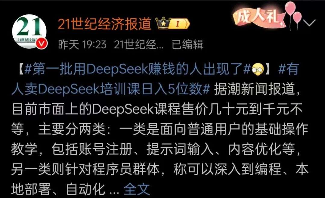 另一边,已经有人靠着DeepSeek实现了发家致富,靠着卖DeepSeek培训课日入5位数!