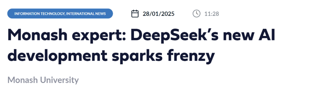 莫纳什大学的Geoff Webb教授表示,DeepSeek的技术突破具有战略意义,将促进全球AI生态多样化。