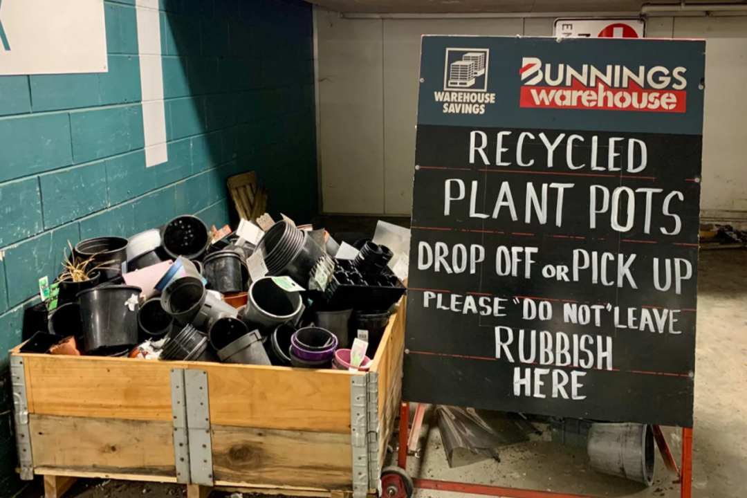 消费者可以将用过的塑料花盆、植物包装、塑料固定杆和标签带到Bunnings的指定回收点。这些回收物不仅可以被回收处理,还可以被其他顾客免费领取再利用。