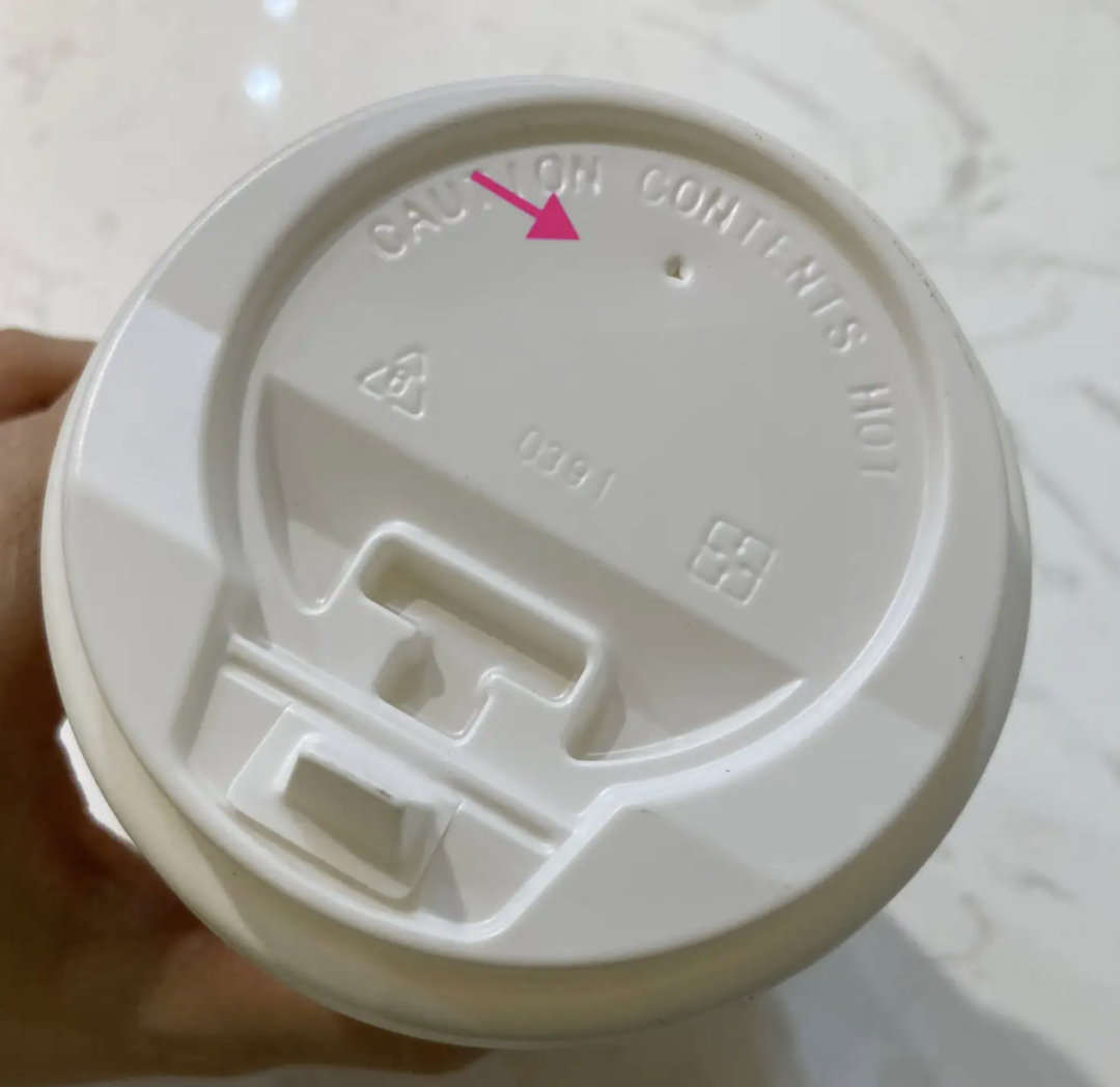 一些饮品包装(特别咖啡杯)在生产过程中就已经设计好了一个固定的呼吸孔。这个孔一般会被封口膜或盖子部分覆盖,用户在使用时会通过吸管或其他方式打开封口来启用这个孔(避免打翻)。预留孔通常是标准化的设计,符合饮品包装的使用需求。