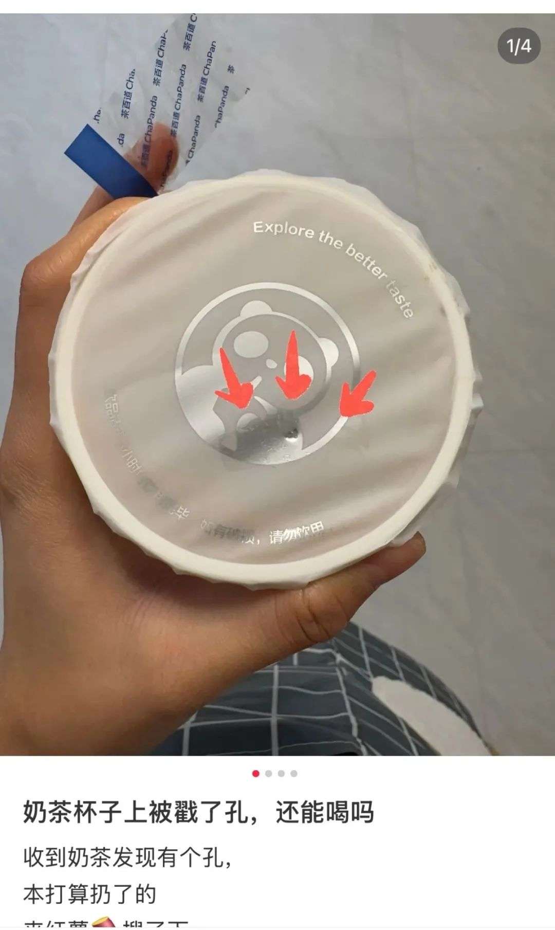 收藏外卖奶茶杯上有针眼大小的孔,还能喝吗?