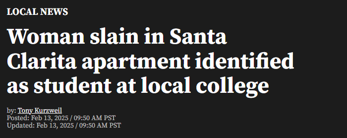 2月4日下午6点45分左右在其位于圣塔克拉利塔南部纽霍尔的公寓内被发现死亡。警方当时前往受害者的公寓进行情况检查,此前社交媒体有朋友称受害者已缺课一周。
