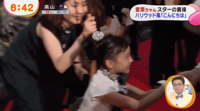 看看当时的爱菜,走红毯落落大方,用英语自我介绍也丝毫不怯场,小小年纪已然初具巨星风范;