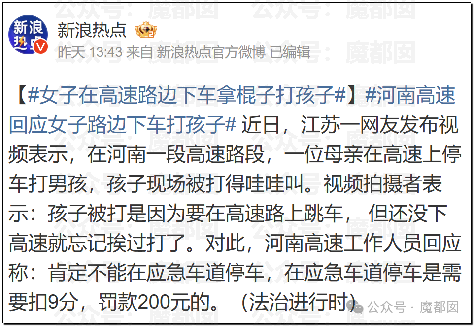 今天还有一个高速公路旁边打孩子的事情上了热搜。