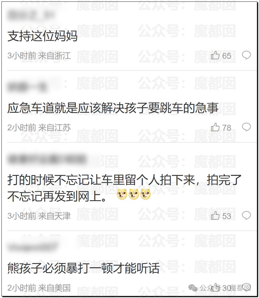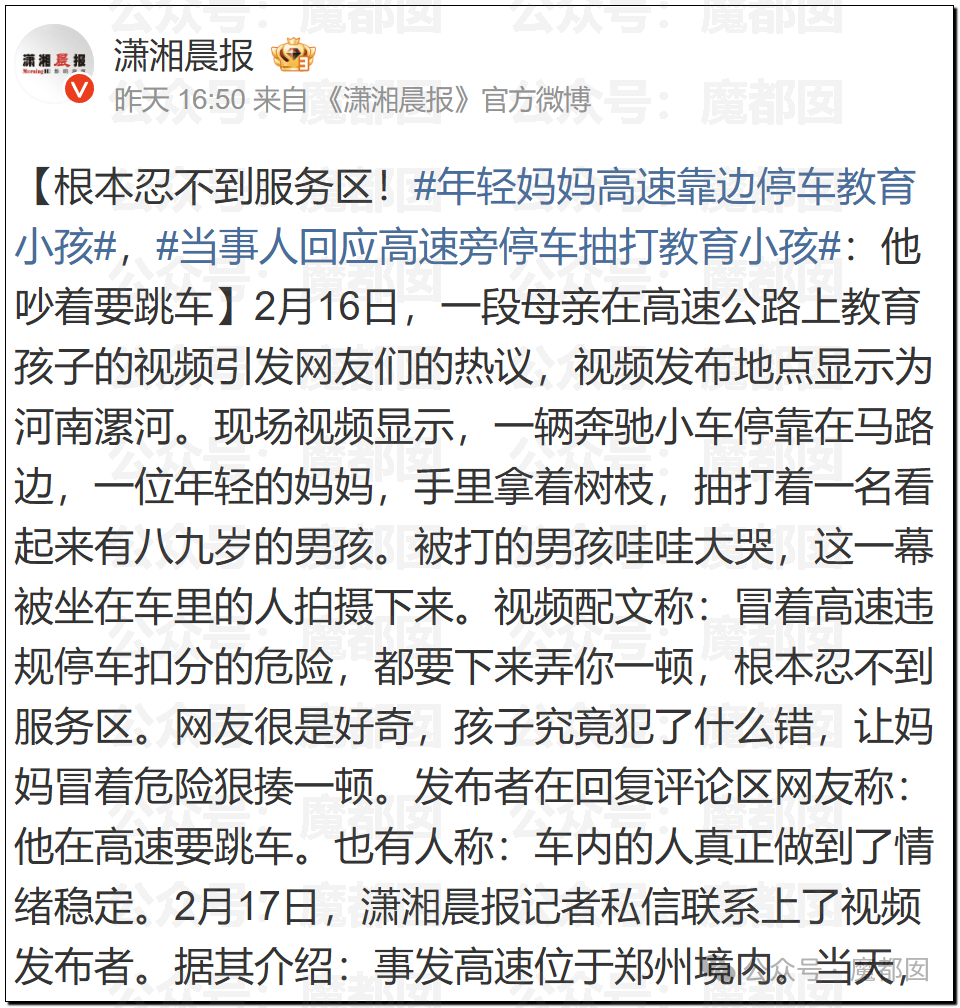 那么到底孩子做了什么需要特地停车下来狠抽一顿呢?母亲回应:孩子当时要跳车。