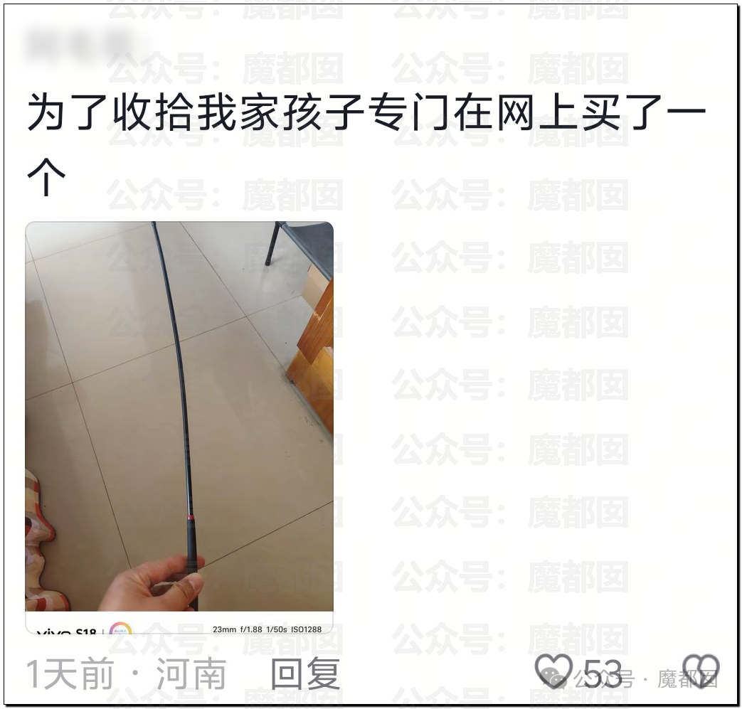 大概的动图,一个母亲在旁边拿着树枝抽孩子。下手不轻: