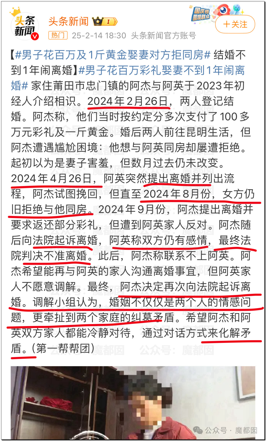 收藏惊!男子花138万和1斤黄金娶妻女方死活不肯同房事件发酵!