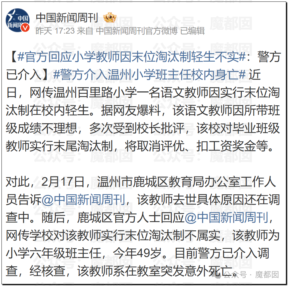 我们只能借助这个话题,写一下臭名昭著的“末尾淘汰制”的危害。