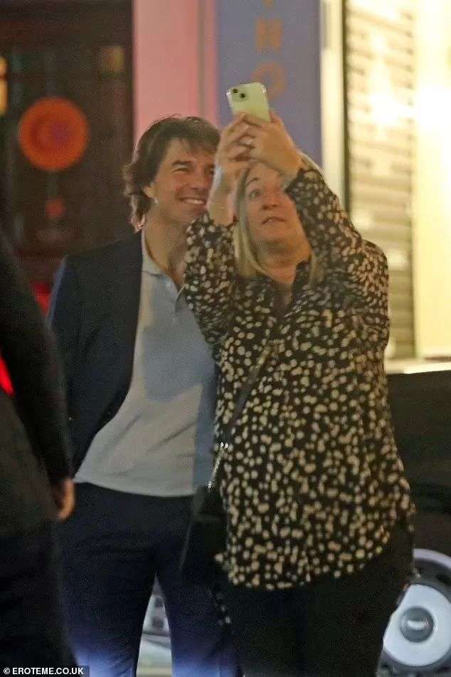 两人拎着两袋打包食物离开餐厅,在街上被粉丝们发现时,都微笑着打招呼互动,阿汤哥还和一位粉丝合了影: