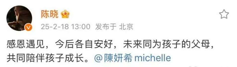 2月18日,娱乐圈再度传来震撼消息,陈晓和陈妍希在被传了那么久的离婚后,两人终于正式发文官宣离婚,给本就精彩的娱乐圈投下一颗重磅炸弹。