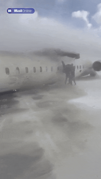 而急救人员则火速赶到现场,向飞机喷洒泡沫,以防发生可能的致命火灾。