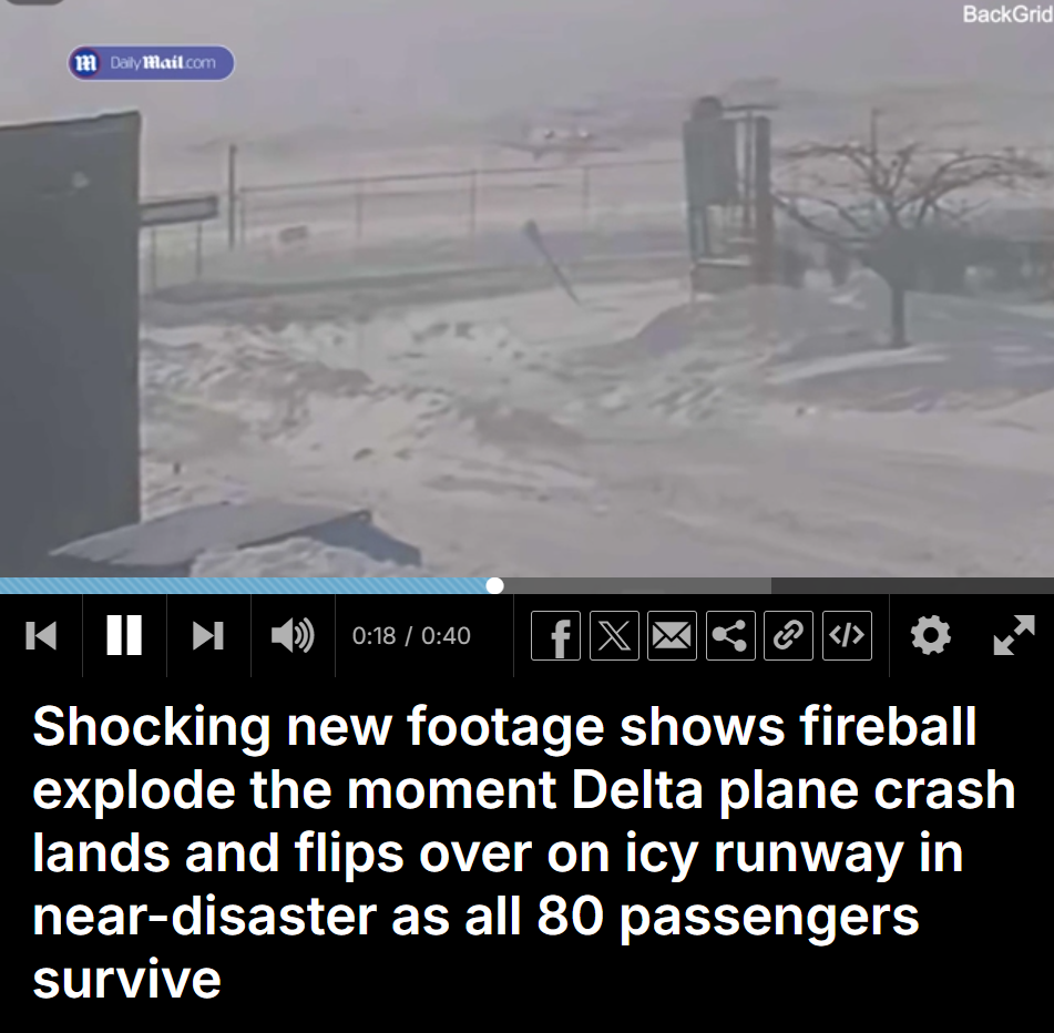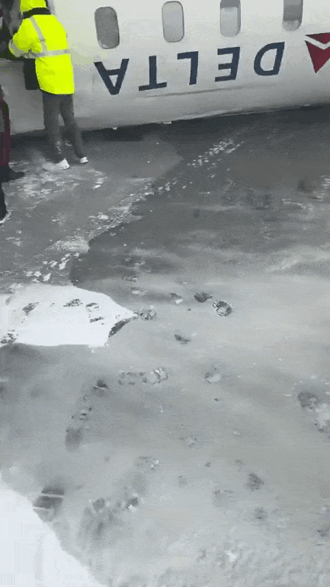 达美航空客机在结冰的跑道上降落并翻覆的那一刻,火球爆炸,险些酿成超大灾难。