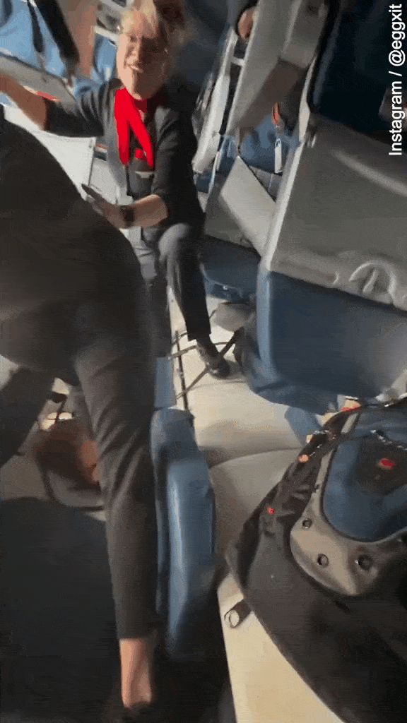 看到库科夫还有心情拍视频,空姐直接忍不住斥责:“快点。不要拍照。把手机拿开。”