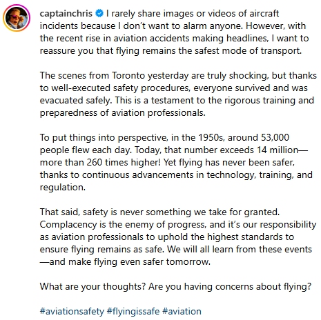 苏西表示,此次坠机事故“原本可能会更加严重”,1987 年丹佛一架 DC-9 飞机就在类似情况下翻转,最后造成了 28 人死亡。