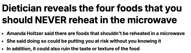 营养学家Amanda Holtzer最近透露了四种绝对不能用微波炉加热的常见食物!