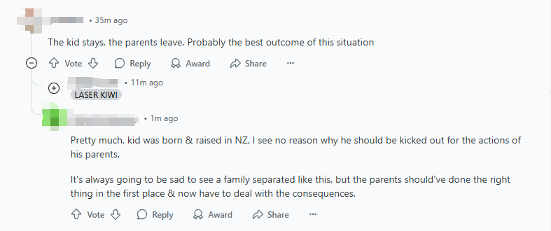 “基本上,这个孩子是在新西兰出生和长大的,他不应该因为父母的行为而被赶出新西兰。”