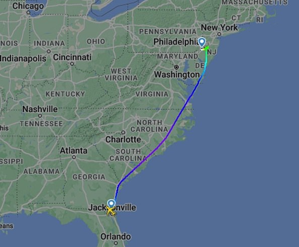 刚刚,一架原定从佛罗里达州杰克逊维尔飞往宾夕法尼亚州费城的飞机在途中发生“紧急情况”。
