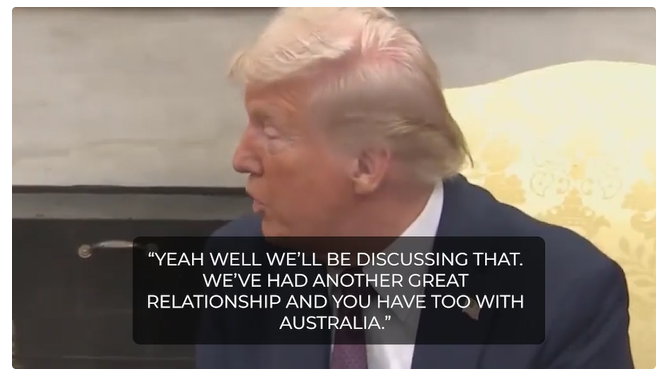 “好吧,我们会讨论这个。我们有另一种伟大的关系。你们也有,与澳大利亚的关系。是的,我们与澳大利亚的关系一直很好。”