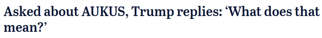 看来特朗普在面对记者提问时没有想起“AUKUS”这一缩写的意思,是澳洲领导人们对这一事件给出的“统一解释”。