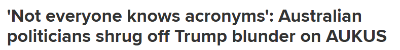 “我们已经听到美国国务卿和国防部长都谈到特朗普总统对AUKUS安排的支持,这才是关键,而不是某人在会议上是否记得一个缩写。”