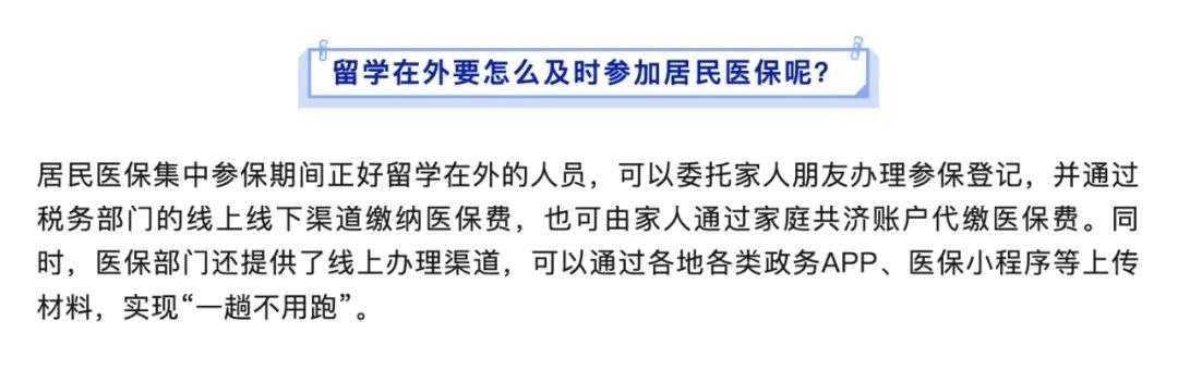 而关于留学在外要怎么及时参加居民医保,医保局还专门进行了细致的说明⬇️