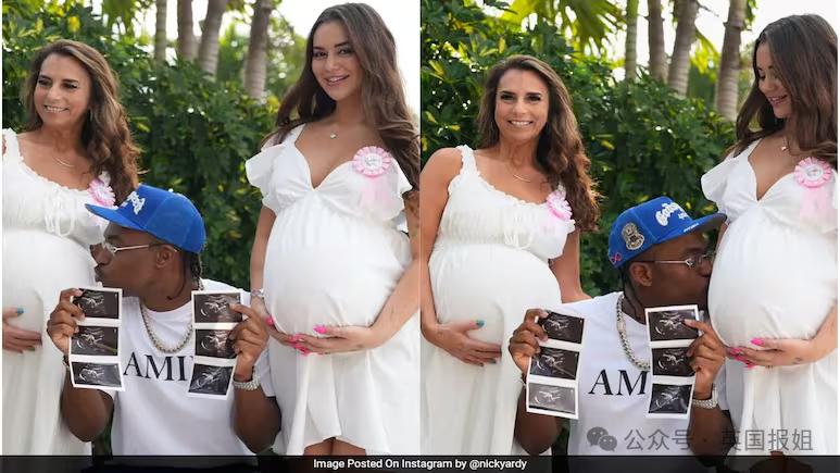 她们展示了两次妊娠阳性测试结果,还有一张亚迪站在母女中间,拿着超声波婴儿的图片,旁边是一大堆亲朋好友。